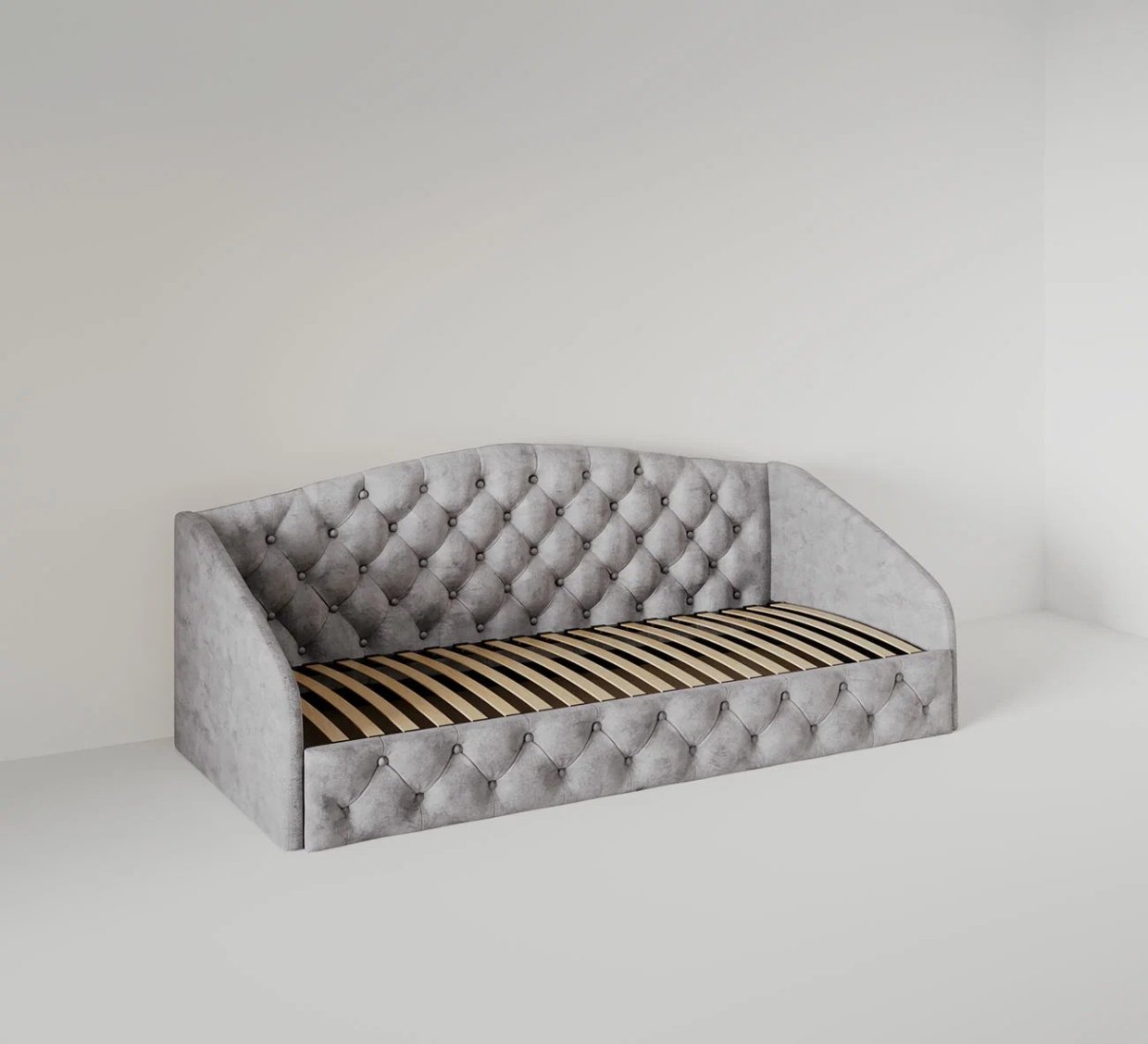 Кровать Берлин детская 90 с ортопедическим основанием велюр сильвер в Екатеринбурге