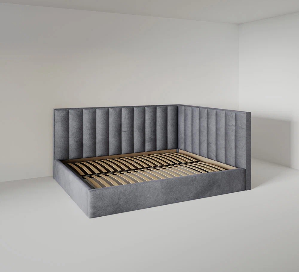 Кровать Тоскана угловая 200 с ортопедическим основанием велюр светло-серый в Екатеринбурге
