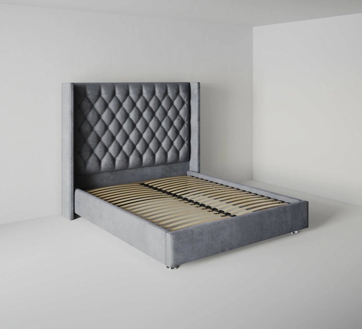 Кровать Версаль люкс 160 с ортопедическим основанием велюр светло-серый в Екатеринбурге