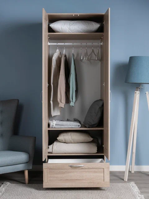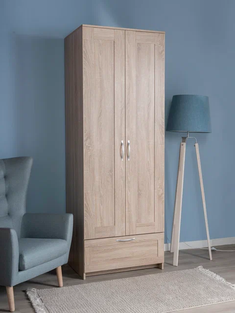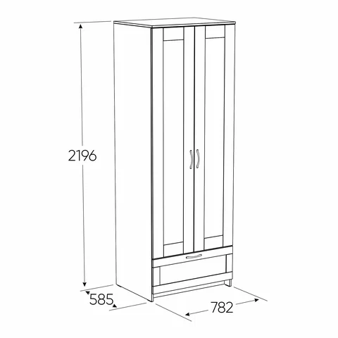 ГУД ЛАКК - знакомая мебель, которую легко купить и собрать! Шкаф ГУД ЛАКК СИРИУС, 2 двери и 1 ящик, 220x78x59 см — элегантность и качество в каждой детали! Серия мебели СИРИУС вдохновлена популярной серией BRIMNES от IKEA, и станет идеальным дополнением вашей квартиры. Почему выбирают Шкаф ГУД ЛАКК СИРИУС, 2 двери и 1 ящик, 220x78x59 см? Этот шкаф СИРИУС с увеличенной высотой — 220 см, для максимального использования пространства! Внутри шкафа расположена прочная платяная штанга, на которой можно разместить одежду на плечиках, сохраняя ее в идеальном состоянии. Просторное внутреннее пространство с двумя дверцами позволяет организовать хранение одежды, обуви, аксессуаров или других вещей. Внешний выдвижной ящик с удобной ручкой предназначен для хранения мелких вещей, аксессуаров или белья. Его можно использовать, не открывая дверцы шкафа, что делает доступ к вещам быстрым и удобным. Шкаф имеет оптимальные размеры, что делает его подходящим для небольших помещений, таких как спальни, прихожие, гостевые комнаты или даже гардеробные. Он не занимает много места, при этом остается вместительным. Ламинированная поверхность устойчива к загрязнениям и легко очищается от пыли с помощью влажной ткани, что делает уход за шкафом простым и быстрым. Шкаф СИРИУС — это идеальное сочетание стиля, функциональности и доступности. Он станет надежным помощником в организации хранения, создании уютной атмосферы и поддержании порядка в вашем доме. Благодаря своему универсальному дизайну и продуманной конструкции, этот шкаф будет радовать вас долгие годы!