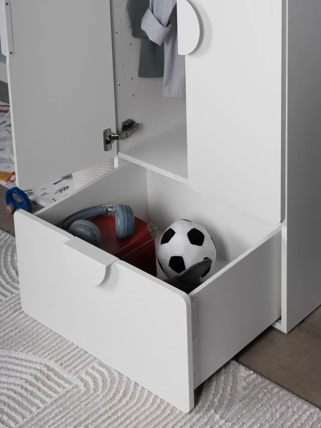 • Наращивайте высоту и функциональность когда угодно Ребенок подрос? Появились новые вещи? Нужно больше места? Просто добавьте новый модуль! Собирайте как конструктор - создавайте внушительные системы хранения любого размера без замены мебели. Растёт вместе с вашей семьёй! Почему шкаф ПИКСИ выбирают заботливые родители?