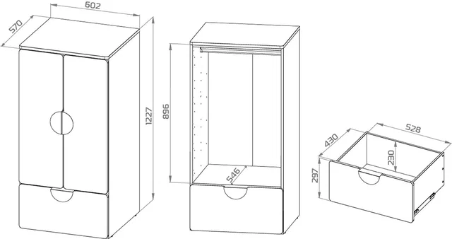 ПИКСИ шкаф распашной с двумя открывающимися дверьми, полкой и одним выдвижным ящиком 60х57х120