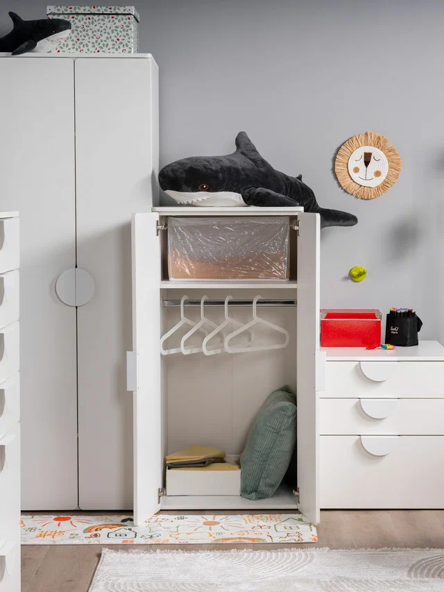 ПИКСИ шкаф распашной с двумя открывающимися дверьми и полкой 60х57х120 ПИКСИ — больше, чем мебель. Умный многофункциональный центр для растущего ребенка! Мечтаете об идеальной мебели для детской, которая растет вместе с вашим малышом? Модульная система ПИКСИ — это именно то, что нужно! Она сочетает в себе стильный дизайн, безупречную функциональность и абсолютную безопасность. Это не просто предмет мебели, а инвестиция в комфорт и гармонию вашего пространства на долгие годы. Умное пространство для игр и порядка! Создайте идеальную систему хранения именно под ваши нужды: • Выбирайте модули с ящиками или дверцами • Легко комбинируйте и достраивайте конструктор • Наращивайте высоту и функциональность когда угодно Ребенок подрос? Появились новые вещи? Нужно больше места? Просто добавьте новый модуль! Собирайте как конструктор - создавайте внушительные системы хранения любого размера без замены мебели. Растёт вместе с вашей семьёй! Почему шкаф ПИКСИ выбирают заботливые родители? ♡ БЕЗОПАСНОСТЬ ПРЕВЫШЕ ВСЕГО: Закругленные края и мягкие формы защитят от случайных ушибов. Безопасные ручки, об которые невозможно пораниться. ♡ НАДЕЖНОСТЬ И ВЫСОКОЕ КАЧЕСТВО: Направляющие скрытого монтажа и петли с доводчиками. Регулируемые по высоте ножки. Суперстойкое пигментное покрытие: устойчиво к царапинам, влаге и истиранию. Легко очищается от следов фломастеров и красок. Основные характеристики: Узнаваемый дизайн – вдохновлен популярной серией SMASTAD от IKEA. Три цвета фасадов для любого дизайна и настроения. В серии ПИКСИ скамья, кровать, комоды, шкафы и стеллажи. Экологичность – производство соответствует стандартам детской мебели. Качество на уровне IKEA – изготовлен на сертифицированной фабрике в Беларуси.