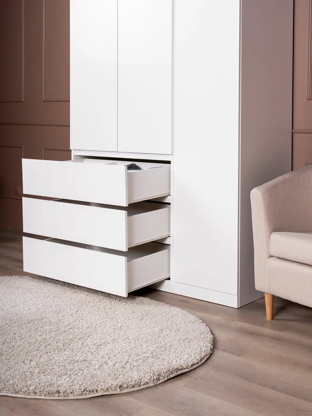 ГУД ЛАКК - знакомая мебель, которую легко купить и собрать! Ищете удобную и функциональную систему хранения для вашего интерьера? Тогда обратите внимание на распашной шкаф ВАРМА Стор! Эта модель сочетает в себе высокое качество, стильный дизайн и доступную цену. Благодаря своим компактным размерам, шкаф легко впишется в любое помещение, будь то спальня, гостиная или детская комната. Направляющие шариковые H45 мм обеспечивают плавное и бесшумное открывание и закрывание дверей, а также надежную фиксацию ящиков. Каждый из трёх вместительных ящиков способен выдержать нагрузку до 8 кг, что позволяет удобно хранить одежду, постельное бельё, полотенца и другие вещи. Три полки также предоставляют достаточно места для размещения книг, игрушек, аксессуаров и прочих предметов. Стиль минимализм шкафа ВАРМА Стор идеально впишется в любой интерьер, где ценится простота и функциональность. Шкаф изготовлен из ДСП с минимальным содержанием формальдегида и соответствует Европейскому классу экобезопасности Е0,5. Это значит, что мебель ГУД ЛАКК идеально подходит и для детской комнаты. Выбирая распашной шкаф ВАРМА Стор, вы получаете не только удобное и практичное решение для хранения вещей, но и стильный элемент интерьера.
