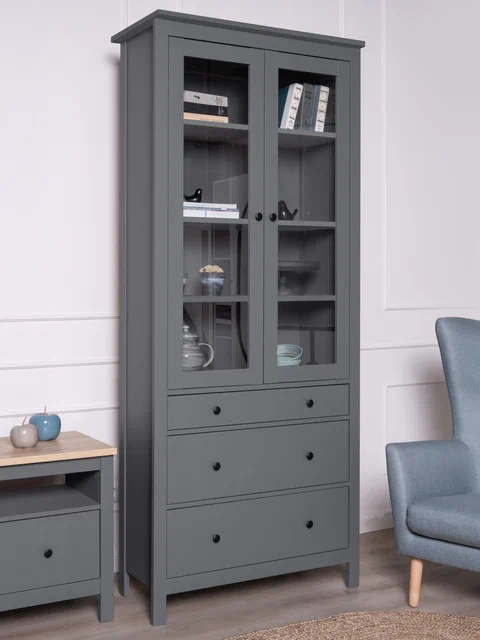 САГА шкаф с витриной 90? Шкаф с витриной САГА — это элегантное и функциональное решение для хранения, которое идеально сочетает в себе стиль, практичность и продуманный дизайн. Стеллаж оснащен тремя вместительными полками, регулирующимися по высоте, что позволяет гибко организовать пространство для хранения книг, посуды, декоративных элементов, фоторамок или других вещей. Дополнительно стеллаж оборудован тремя выдвижными ящиками, которые идеально подходят для хранения тех предметов, которые вы предпочитаете держать вне поля зрения. Ящики оснащены доводчиками и направляющими полного выдвижения, обеспечивающими плавное и бесшумное открывание, а также максимальное удобство в использовании. Благодаря такой продуманной конструкции, вы сможете легко адаптировать стеллаж под свои нужды и поддерживать порядок в доме.