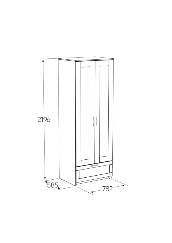 Шкаф ГУД ЛАКК СИРИУС, 2 двери и 1 ящик, 220x78x59 см — элегантность и качество в каждой детали! Серия мебели СИРИУС вдохновлена популярной серией BRIMNES от IKEA, и станет идеальным дополнением вашей квартиры. Почему выбирают Шкаф ГУД ЛАКК СИРИУС, 2 двери и 1 ящик, 220x78x59 см? Этот шкаф СИРИУС с увеличенной высотой — 220 см, для максимального использования пространства! Внутри шкафа расположена прочная платяная штанга, на которой можно разместить одежду на плечиках, сохраняя ее в идеальном состоянии. Просторное внутреннее пространство с двумя дверцами позволяет организовать хранение одежды, обуви, аксессуаров или других вещей. Внешний выдвижной ящик с удобной ручкой предназначен для хранения мелких вещей, аксессуаров или белья. Его можно использовать, не открывая дверцы шкафа, что делает доступ к вещам быстрым и удобным. Шкаф имеет оптимальные размеры, что делает его подходящим для небольших помещений, таких как спальни, прихожие, гостевые комнаты или даже гардеробные. Он не занимает много места, при этом остается вместительным. Ламинированная поверхность устойчива к загрязнениям и легко очищается от пыли с помощью влажной ткани, что делает уход за шкафом простым и быстрым.