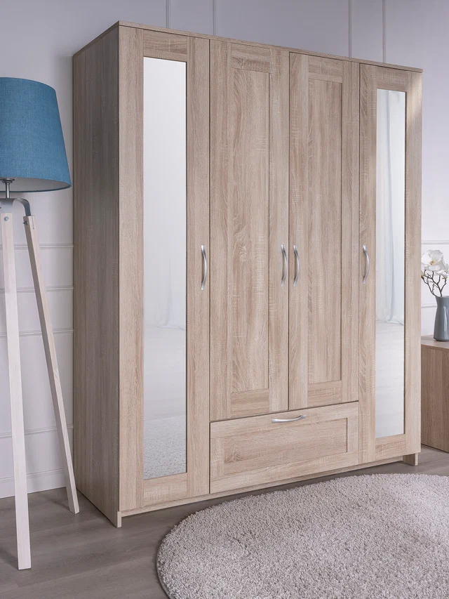 Шкаф Сириус 4-х дверный с ящиком и зеркалами высотой 190 см, дуб сонома в Екатеринбурге