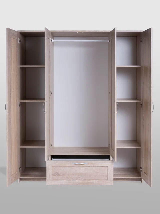 Шкаф Сириус 4-х дверный с ящиком и зеркалами высотой 190 см, дуб сонома в Екатеринбурге - gold-germes.ru | фото 4