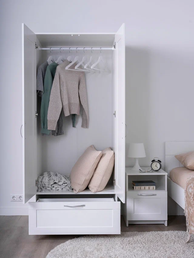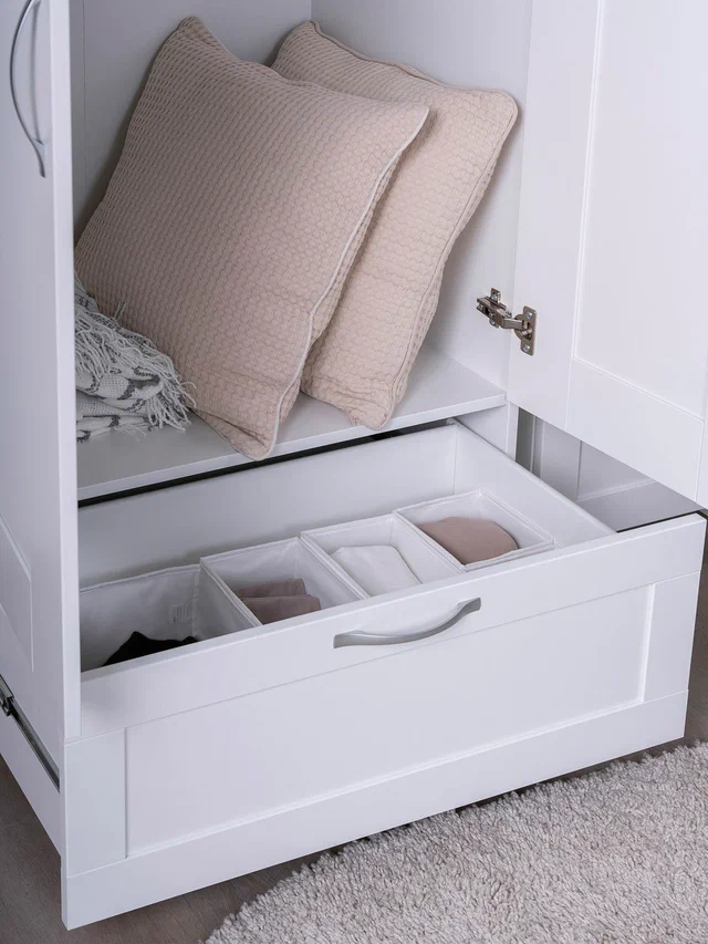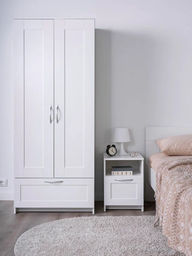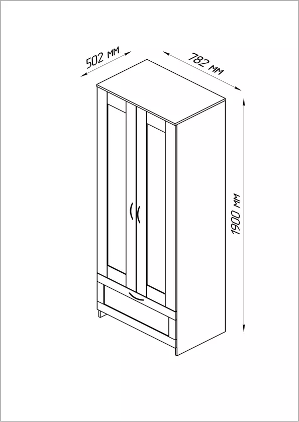 ГУД ЛАКК - знакомая мебель, которую легко купить и собрать! ГУД ЛАКК СИРИУС, 2 двери и 1 ящик, 190х78х50 см — элегантность и качество в каждой детали! Серия мебели СИРИУС вдохновлена популярной серией BRIMNES от IKEA, и станет идеальным дополнением вашей квартиры. Почему выбирают шкаф ГУД ЛАКК СИРИУС, 2 двери и 1 ящик, 190х78х50 см? Шкаф СИРИУС — это стильное и функциональное решение для хранения, которое сочетает в себе практичность, элегантный дизайн и продуманную организацию пространства. Внутри шкафа расположена прочная платяная штанга, на которой можно разместить одежду на плечиках, сохраняя ее в идеальном состоянии. Просторное внутреннее пространство с двумя дверцами позволяет организовать хранение одежды, обуви, аксессуаров или других вещей. Внешний выдвижной ящик с удобной ручкой предназначен для хранения мелких вещей, аксессуаров или белья. Его можно использовать, не открывая дверцы шкафа, что делает доступ к вещам быстрым и удобным. Шкаф имеет оптимальные размеры, что делает его подходящим для небольших помещений, таких как спальни, прихожие, гостевые комнаты или даже гардеробные. Он не занимает много места, при этом остается вместительным. Ламинированная поверхность устойчива к загрязнениям и легко очищается от пыли с помощью влажной ткани, что делает уход за шкафом простым и быстрым. Комбинированный шкаф СИРИУС — это идеальное сочетание стиля, функциональности и доступности. Он станет надежным помощником в организации хранения, создании уютной атмосферы и поддержании порядка в вашем доме. Благодаря своему универсальному дизайну и продуманной конструкции, этот шкаф будет радовать вас долгие годы!